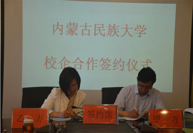 2016年5月27日上午,內(nèi)蒙古民族大學(xué)校企合作簽約儀式在內(nèi)蒙古民族大學(xué)行政樓2樓會(huì)議室舉行。內(nèi)蒙古民族大學(xué)副校長任軍、就業(yè)處處長周峰以及近20家企業(yè)的代表都前來參加了此次簽約儀式。通遼市軍利易購有限公司副總經(jīng)理張宇代表軍利與任軍進(jìn)行了簽約。 簽約儀式開始之前,民大校長任軍詳細(xì)地介紹了現(xiàn)在民大的發(fā)展現(xiàn)狀,他表示,民大目前的學(xué)科種類在內(nèi)蒙地區(qū)是非常齊全的;學(xué),F(xiàn)有教師1739人,其中專任教師1054人,碩士占到82%左右,在校生22461人,本科生達(dá)到20630人。除此之外,少數(shù)民族學(xué)生占到51%以上,蒙古族學(xué)生40%左右。學(xué)校在近兩年按照國家政策要求正在落實(shí)“一帶一路”及向北開放戰(zhàn)略,也與通遼市人民政府、中關(guān)村等都簽訂了相關(guān)的校企合作文件,今天能與在場這么多優(yōu)秀的企業(yè)進(jìn)行合作,是民大也是民大學(xué)生的重要機(jī)會(huì)。 軍利作為通遼首屈一指的電商龍頭企業(yè),得到了民大的極大認(rèn)可,副總經(jīng)理張宇也代表公司與民大簽訂了校企合作協(xié)議,并承諾愿意為大學(xué)畢業(yè)生提供空間和平臺(tái)幫助他們實(shí)現(xiàn)自己的夢想。